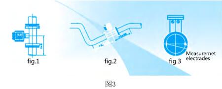 (1)測量管必須保持滿管,安裝的位置*好選在低點。*理想的位置(如圖1所示),流體由低往高流,或者(如圖3所示)安裝。