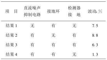 結果 4:直流噪聲抑制電路和檢測器不接地 ,接地環(huán)分流了漏電流,因而輸出波動遠小于其他結果。