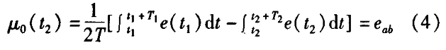 分體型電磁流量計一般都采用工頻交流電源供電,其電源電壓的幅值和頻率的變化都會給分體型電磁流量計帶來電源性干擾噪聲。對電源電壓的幅值變化,因采用多級集成穩(wěn)壓,一般而言電源電壓的幅值變化對電磁流量的測量精度影響不大。當電源電壓的頻率波動時,雖然其波動范圍有限,但對分體型電磁流量計測量精度影響較大。為了解決工頻干擾問題,實現(xiàn)對流體流速感應電勢e柚信號的準確測量,需利用以下基本關系:①勵磁周期為工頻周期的整數(shù)倍,即勵磁頻率為50/nHz(n為偶數(shù));②正負勵磁下的同相位采樣。圖2是對應低頻矩形波勵磁形式下的典型電勢信號形式,按上述關系在一個勵磁周期下,若假設t。和t:點為工頻干擾的等效干擾點,且采樣寬度T=T1=T2,則e –ab的基本算式為:,