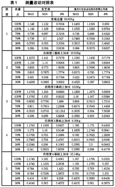 在造紙行業(yè)有大量的紙漿液體需要測(cè)量,就會(huì)用到大量的流量測(cè)量儀表,目前在造紙行業(yè)中用于測(cè)量流量的儀表,主要有電磁流量計(jì)等儀表,因?yàn)?a href="http://www.8886665.com">電磁流量計(jì)具有非常強(qiáng)的優(yōu)點(diǎn),所以非常適合在紙漿的流量測(cè)量中使用。在紙漿實(shí)驗(yàn)裝置上,使用串聯(lián)在同一管道上該公司生產(chǎn)的防爆型電磁流量計(jì)價(jià)格與日本東芝的防爆型電磁流量計(jì)價(jià)格測(cè)量不同濃度和流量的紙漿漿液,以驗(yàn)證其可靠性。波動(dòng)率對(duì)比實(shí)驗(yàn)結(jié)果表明,該產(chǎn)品用于紙漿漿液測(cè)量時(shí)能夠很好地克服漿液噪聲。在滿流量測(cè)量時(shí),上述實(shí)驗(yàn)中各濃度下漿液測(cè)量穩(wěn)態(tài)波動(dòng)率均在1%以內(nèi);其它流量下測(cè)量時(shí),由于實(shí)驗(yàn)系統(tǒng)主管道上游分流控制流速不穩(wěn),進(jìn)而導(dǎo)致測(cè)量穩(wěn)態(tài)波動(dòng)率相對(duì)較大,甚至達(dá)到近7‰ 但由表1可知,在各種漿液濃度及各流量點(diǎn)下,凱銘儀表有限公司生產(chǎn)的防爆型電磁流量計(jì)價(jià)格的穩(wěn)態(tài)波動(dòng)率始終與日本東芝防爆型電磁流量計(jì)價(jià)格的測(cè)量結(jié)果一致,從而表明實(shí)驗(yàn)系統(tǒng)的測(cè)量結(jié)果能準(zhǔn)確反映實(shí)際漿液流量大小。 說明:MAX、MIN分別表示該組數(shù)據(jù)測(cè)得流速的的*大值和*小值,單位m/s。