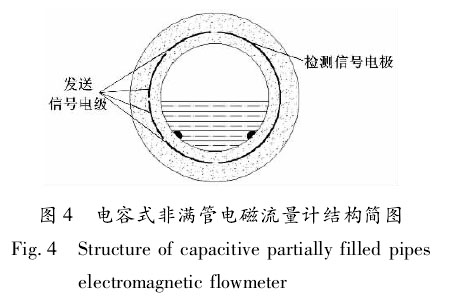 ②電容式非滿管渠道排水流量計h。電容式非滿管渠道排水流量計結(jié)構(gòu)簡圖如圖4所示。、檢測信號電* 發(fā)送信號電