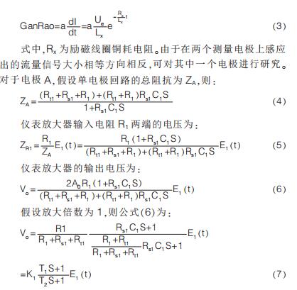 提出在硬件電路上加入模擬開關, 干擾尖峰到來時斷開模擬開關避免干擾進入后級電路,尖峰過去重新打開模擬開關;K.Saito 等提出漂移校正法,先以高勵磁頻率進行勵磁,在勵磁過程中插入低勵磁頻率提取用于漂移校正的非固定微分噪聲分量,但在插入的低勵磁頻率段漿液噪聲較大且很難將漿液噪聲與流量信號分離,此時的校正因子非單純的非固定噪聲分量,改進措施是長時間取平均值得到穩(wěn)定因子。 傳統(tǒng)方法是同步采樣保持法,即在磁場穩(wěn)定階段采樣。 其他消除干擾的方法有設置干擾補償機構、控制勵磁電流變化率減小干擾幅值、矩形波代替梯形波、希爾伯特黃變換結合傅里葉變換和程控增益技術等。經上述對現(xiàn)有的文獻分析與總結可知, 當前消除微分噪聲主要從信號處理方面入手,并未對影響噪聲的因素加以研究。 本文建立電*測量回路等效模型,給出仿真模型搭建、參數取值和仿真結果分析。