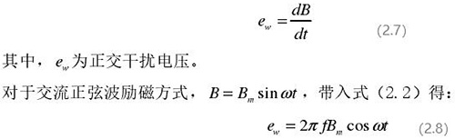 從上圖 2.5 中可以觀察到兩個電*、勵磁線圈、轉(zhuǎn)換器內(nèi)阻之間形成了一個閉合回路,將此回路稱之為初級繞組,從理論上進行分析,磁力線 B 應(yīng)當(dāng)平行于勵磁線圈所產(chǎn)生的磁感應(yīng)線,但在實際的應(yīng)用過程中由于工藝差異,因此無法達到理想狀態(tài),會產(chǎn)生磁力線穿過勵磁線圈磁感應(yīng)線的情況,此時將會產(chǎn)生相應(yīng)的感應(yīng)電動勢,將此部分感應(yīng)電動勢稱為變壓器效應(yīng)。此效應(yīng)同樣滿足于楞次定律,利用楞次定律進行計算可得如下電動勢: