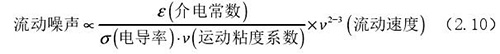 流動噪聲主要出現(xiàn)在低電導(dǎo)率流體的檢測中,由輸出端輸出的直流*化電壓時常出現(xiàn)左右擺動的現(xiàn)象,而此種擺動的電壓被稱為流動噪聲。上式(2.5)中可以觀察了解到流體電導(dǎo)率和流動噪聲呈現(xiàn)出負相關(guān)關(guān)系,由此可以了解到在進行低電導(dǎo)率的計算中需要重點考慮位移電流。