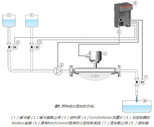 泵上的閥門和油箱出口由控制器操作。通過(guò)管道式電磁流量計(jì)后面的混合閥可實(shí)現(xiàn)混合操作以及配方精度。