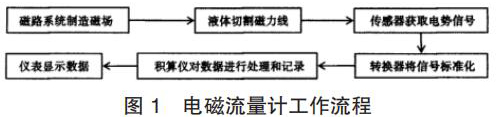 酸堿液計(jì)量表的產(chǎn)生主要是基于法拉*電磁感應(yīng)定律。在酸堿液計(jì)量表的應(yīng)用中,磁路系統(tǒng)會在流量計(jì)運(yùn)行過程中逐步出現(xiàn)直流磁場與交流磁場,該磁場的產(chǎn)生為后期的測量提供了良好的前提條件,營造了測量所需的磁場環(huán)境,因此,在酸堿液計(jì)量表應(yīng)用時,一旦被測液體在導(dǎo)管中經(jīng)過該磁場環(huán)境時,必然會產(chǎn)生一定的切割磁力線運(yùn)動,在這種情況下,電*傳感器就會發(fā)揮其作用,將導(dǎo)管內(nèi)的流量轉(zhuǎn)換為感應(yīng)電勢信號,隨后此轉(zhuǎn)換形成的信號逐步被傳遞給轉(zhuǎn)換器。而轉(zhuǎn)換器更是可以將所獲得的流量信號等加以處理,通過分析、對比等,轉(zhuǎn)換器會將該信號變?yōu)闃?biāo)準(zhǔn)信號,隨后將該信號輸出給積算儀,進(jìn)一步進(jìn)行信號的處理,這些處理以后的信號*終會在酸堿液計(jì)量表的儀表中顯示,呈現(xiàn)*終的流量測量結(jié)果,其基本的流程如圖 1 所示。