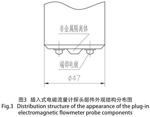 通過大量的試驗(yàn),對(duì)探頭端部外型結(jié)構(gòu)亦采用特殊設(shè)計(jì),從而消除兩個(gè)電*之間的擾流現(xiàn)象,同時(shí)亦消除因通電產(chǎn)生磁場,導(dǎo)致兩個(gè)電*吸附介質(zhì)中的鐵屑而影響測量精度和死區(qū)效應(yīng),增強(qiáng)了輸出信號(hào)的穩(wěn)定性,從而提高傳感器準(zhǔn)確度和抗干擾性。通過結(jié)構(gòu)的優(yōu)化設(shè)計(jì),使用壽命更長,酸水流量計(jì)探頭局部,如圖 3 所示。