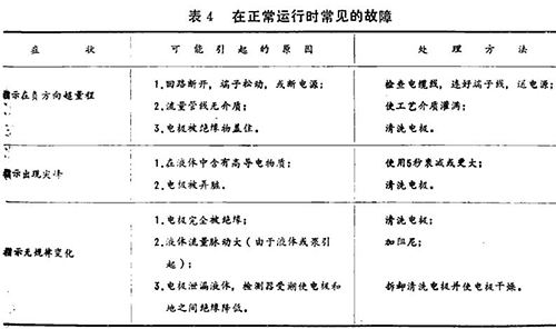 在儀表指示不正常時(shí),可根據(jù)下面介紹的一些典型故障和處理方法進(jìn)行必要的處理。這些故障可分為啟動時(shí)易產(chǎn)生的故障,正常運(yùn)行時(shí)出現(xiàn)的故障和接地不良引起的故障(見表3、表4)。