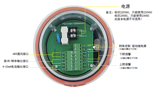 *一種:為黃色的表頭,這款是大泉流量新款的表頭,算是*三代一體式電磁流量計了吧,接線方法如下:
