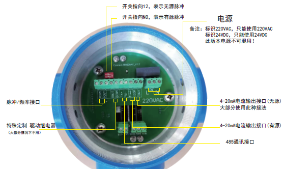 *二款:為藍(lán)色表頭,使用的也是比較廣泛的,算是*二代一體式電磁流量計,接線方法如下: