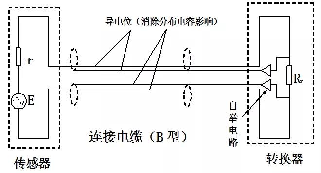 當Ri>>r,C0(連接電纜二線間分布電容)很小時,Ei≈E;當介質電導率很低,轉換器輸入電壓衰減Ei,而C0分布電容并聯(lián)效應顯著,且波形發(fā)生畸變。當被檢測介質電導率低,傳感器與轉換器間距長時,使用多重屏蔽電纜的概率越高。