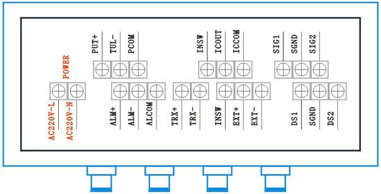 ①儀表電源:AC220V火線接“L”端子,零線接“N”端子。