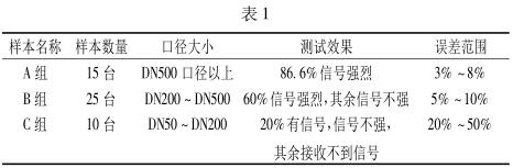 通過大量的在線檢測(cè)試驗(yàn),可以看出所測(cè)管道管徑對(duì)超聲流量計(jì)測(cè)試效果有明顯影響。根據(jù)數(shù)據(jù)顯示,管徑越大,測(cè)試效果越好,示值誤差越小。隨著管徑的減小,超聲流量計(jì)所能檢測(cè)到的流速信號(hào)也隨著變?nèi)?,?dāng)口徑小于 DN50 時(shí),基本沒有信號(hào)或是產(chǎn)生巨大的干擾信號(hào)。