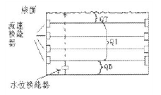 由(3)式可見,只要測(cè)出正逆向的傳播時(shí)間T1、T2就可以計(jì)算出水的流速,進(jìn)而求得流量。但是根據(jù)(3)式求得的流速是超聲波傳播路徑上的線平均流速,由于在一個(gè)渠道的水流斷面上,各處的流速并不相同,因此僅用一個(gè)聲路計(jì)算流量將會(huì)產(chǎn)生很大的誤差。為提高測(cè)量精度,我們?cè)诿髑嗝娴牟煌叨壬显O(shè)置了四路換能器下圖,構(gòu)成多個(gè)測(cè)量聲路,從而測(cè)出水流斷面上的多層流速。同時(shí)還設(shè)一個(gè)水位換能器,這樣流量計(jì)中的計(jì)算機(jī)可以根據(jù)測(cè)得的流速和水位準(zhǔn)確地計(jì)算出流量Q。為了及時(shí)了解流量計(jì)的運(yùn)行情況和檢測(cè)數(shù)據(jù),通過RS232數(shù)據(jù)接口和RS485接口,將數(shù)據(jù)傳給“893”網(wǎng),供調(diào)度系統(tǒng)和相關(guān)部門使用。