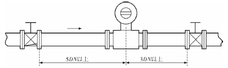 dn65一體式電磁流量計(jì)的安裝質(zhì)量對其測量結(jié)果的影響較大,因此在安裝時(shí)需要注意幾個(gè)問題。*先,dn65一體式電磁流量計(jì)直管段的選擇在配管時(shí)一定要按照要求進(jìn)行選擇,一般選擇流量計(jì)通徑與工藝管道通徑相同,即可滿足工程需要,而且安裝方便、壓力損失小,流量計(jì)直管段上游側(cè)的長度不少于5倍工藝管道直徑,下游側(cè)的長度不少于3倍工藝管道直徑(圖2)。但在流速太慢而又要求精度較高或需要變徑的應(yīng)用場合,可選擇通徑小于工藝管道通徑的流量計(jì),以提高測量精度,此時(shí)流量計(jì)上、下游必須加裝異徑管,且進(jìn)口異徑管上游側(cè)應(yīng)有長于10倍工藝管道直徑的直管段,下游側(cè)應(yīng)有長于5倍工藝管道直徑的直管段(圖3)。
